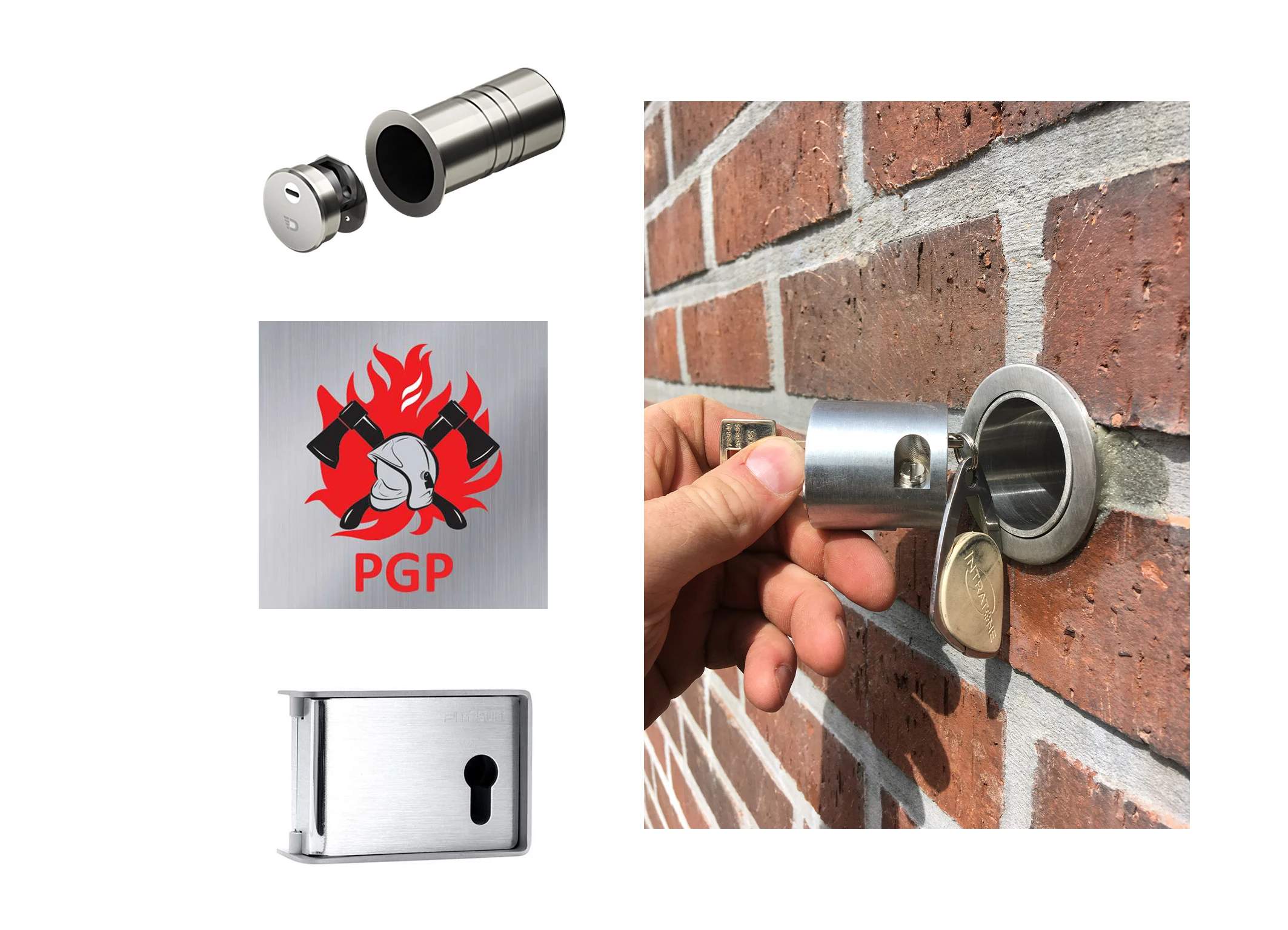 Certains boîtiers à clés sécurisés sont conçus pour servir de coffret PGP (Passe Général Pompier). Comme leur nom l’indique, ils servent aux pompiers – mais également aux autres entreprises amenées à intervenir en urgence : gaz, électricité, eau, ascenseur, etc.